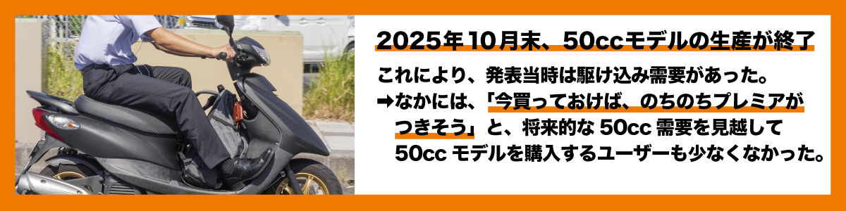 このニュースが各種メディアで報じられた際、新車の50ccモデルが手に入るうちに販売店へ押し寄せる「駆け込み需要」が発生した地域もあるとされています。