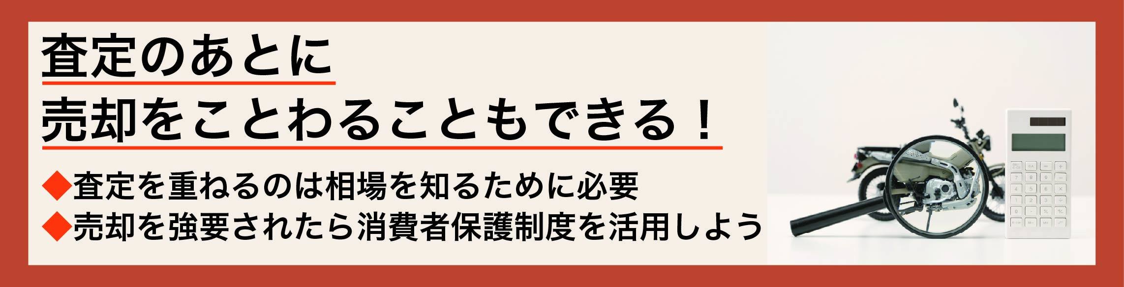 しかし、悪質な業者では査定後にバイクの売却を迫るケースも考えられます。