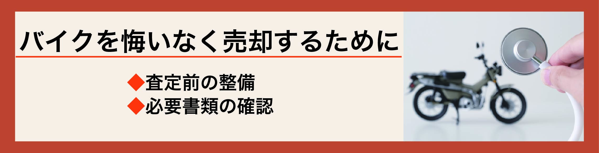 また、査定を受ける前に必要な整備を受けたり、必要な書類を用意することで円滑に、より高い金額でバイクを売却できる可能性があります。