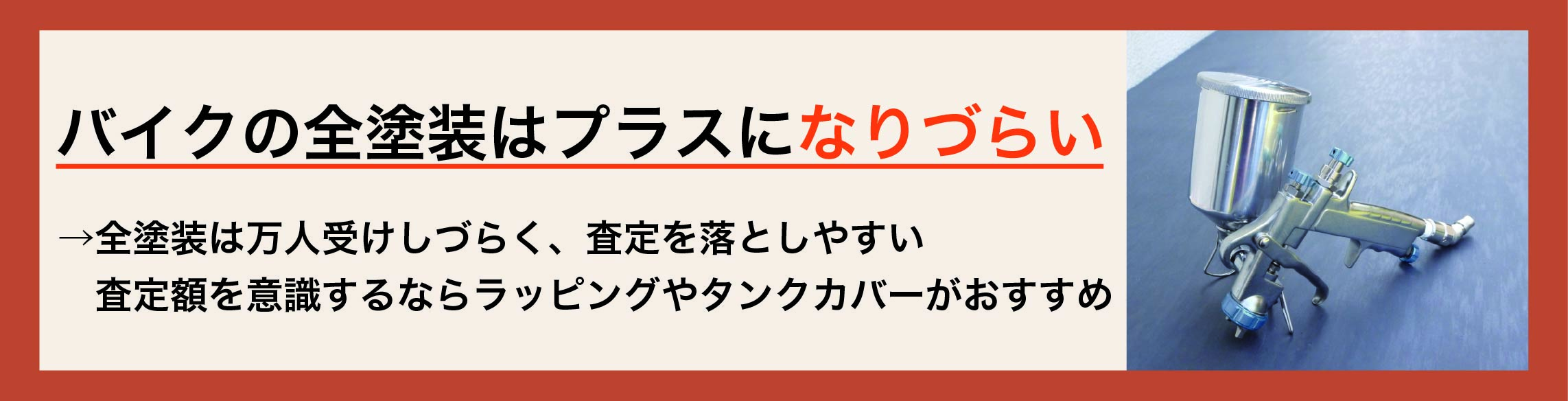 バイクの全塗装は、所有者の満足度を高める一方で、査定額に悪い影響を及ぼすことが多いです。
