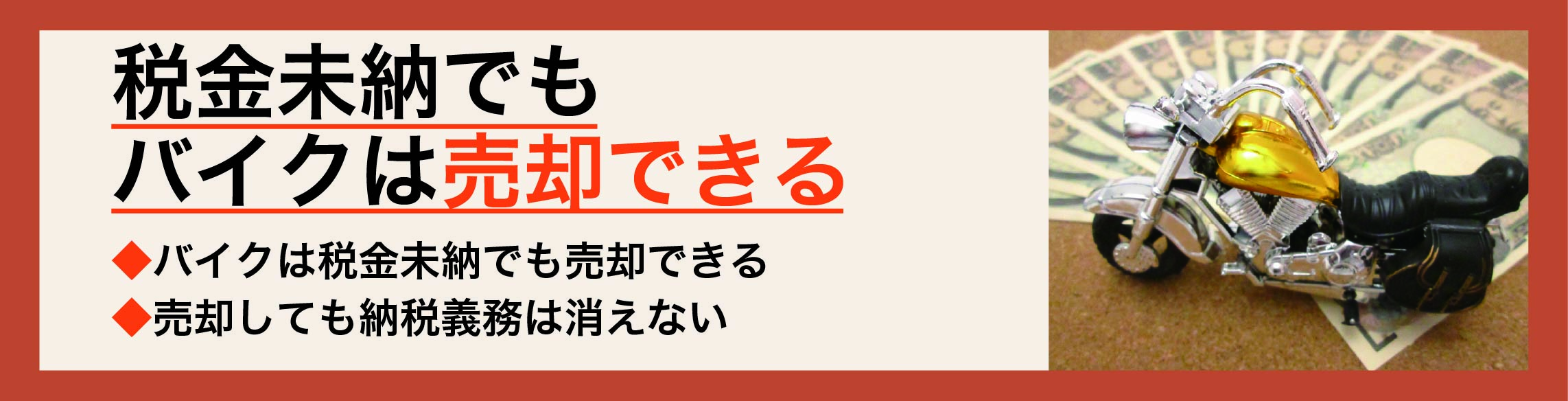 このように、バイクは税金未納でも売却できますが、未納分の税金を放置してよいわけではありません。