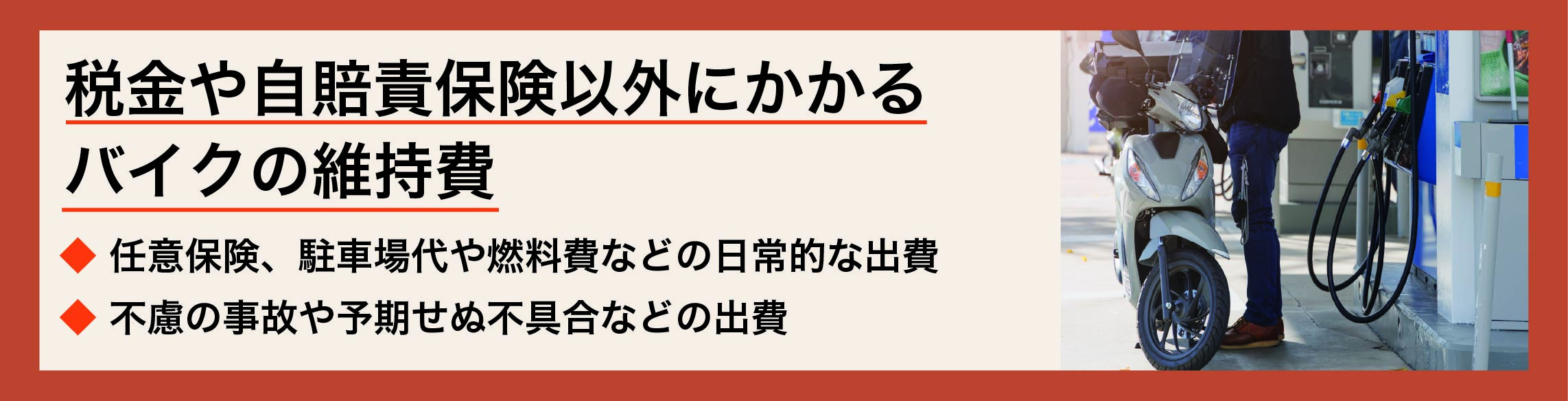 したがって、バイクを選ぶ際には制度面での維持費とあわせて、自分の使い方を想定した費用も考慮することが重要になります。