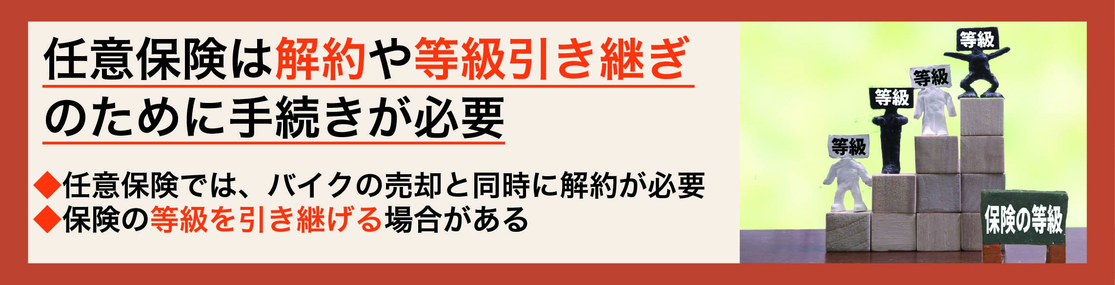 そして、バイクを売却するときには、自賠責保険だけでなく任意保険についても手続きが必要です。