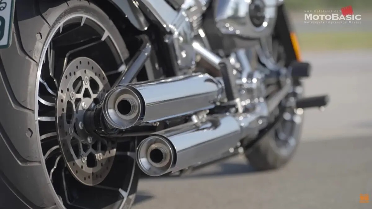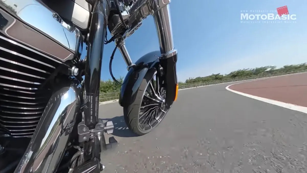 ブレイクアウトの足まわりは、極太リアタイヤ(約240mm)とフロント130mmタイヤの組み合わせで強力なグリップと安定した直進性を実現する。高剛性のフロントフォークが車体全体の安定感に寄与し、フォワードコントロールと相まって自然な前傾姿勢をサポート。コーナリング時はリアタイヤ幅の影響で倒し込みはやや重いが、安定したハンドリングを確保。微細な路面ギャップはリアタイヤが吸収し、高質感と安心感のある走行フィールを提供する。