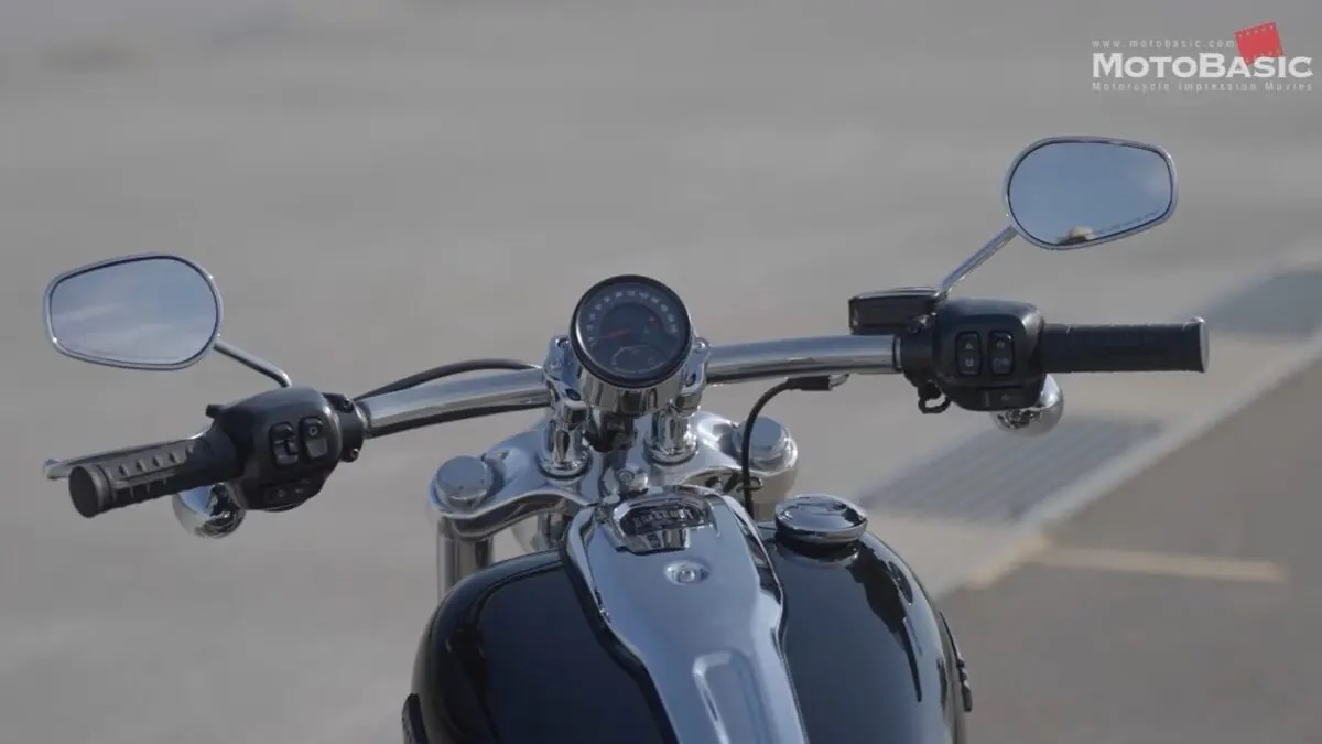 ブレイクアウトのハンドルは幅・高さとも絶妙で、自然な姿勢をもたらす。メーターは従来の小型デジタルから丸型アナログに刷新され、スピードや回転数を瞬時に把握可能。灯火類はトラディショナルデザインに改め、ヘッドライトやウインカーは過度に主張せず、全体のスポーティな印象を引き立てる。操作性と視認性、デザインの調和を重視し、快適かつ安心感のあるライディングを実現する仕様である。