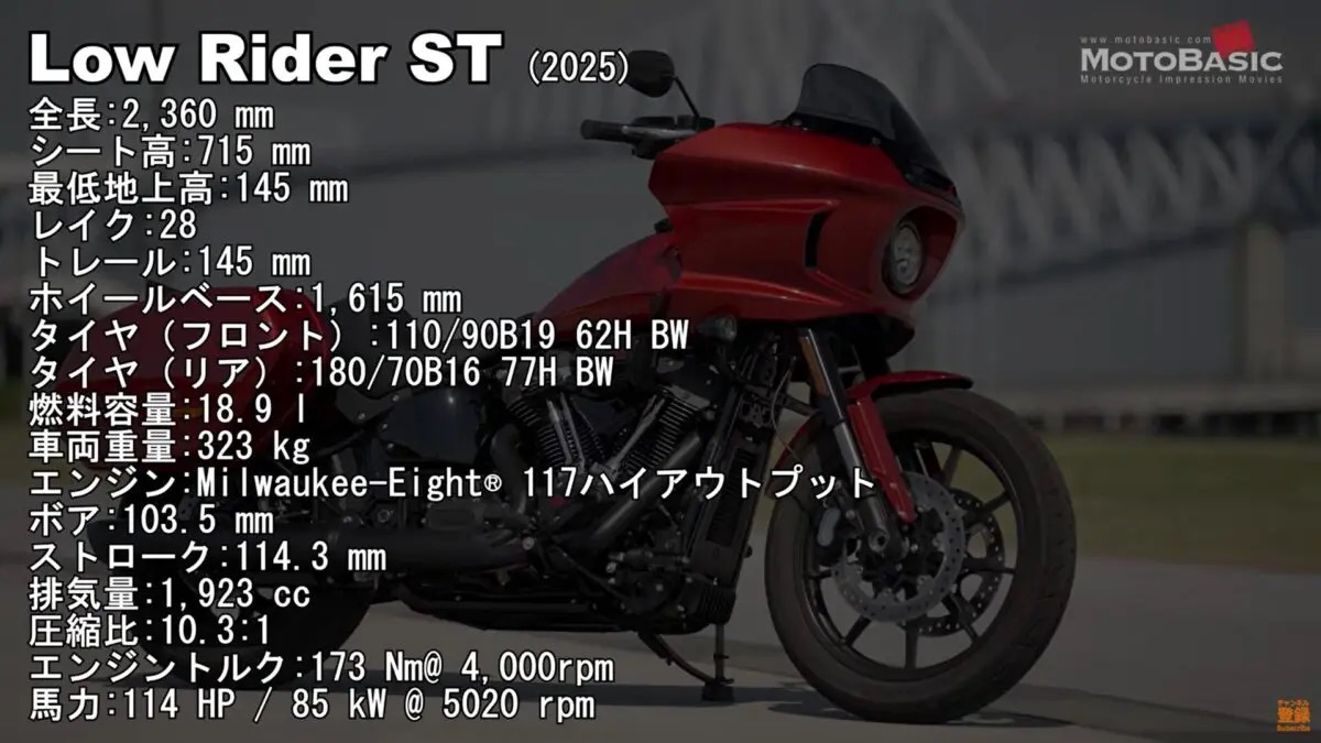 2025年モデル「ローライダーST」は、前モデルよりエンジン性能や快適性、装備が向上したモデルである。ミルウォーキーエイト117エンジンはチューニング改良によりスロットルレスポンスが向上し、レッドゾーンも5,600rpmから5,900rpmに拡大。加速性能が強化され、長距離ツーリングや快適性を重視するライダーに最適である。一方、「ローライダーS」は都市部での機動性とアグレッシブな走行向きで、どちらもハーレーらしいスタイルと性能を備える。