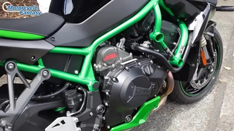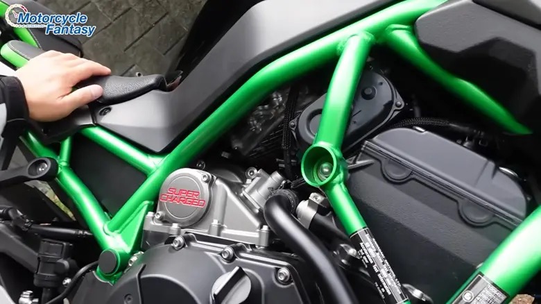 排気量998ccの水冷4気筒エンジンはDOHCを採用。ボアΦ76mm、ストローク55mmのショートストローク設計で、スーパーチャージャーによる空気の加給を行うことで最大出力は200PS/11000回転、最大トルクは14kgf・m/8500回転を発生。6速マニュアルトランスミッションは、走行時はクラッチ操作を必要としないクイックシフターが搭載されている。