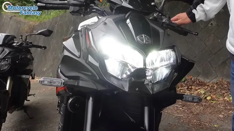 ヘッドライトは2眼に見えるが、実はロービーム×2、ハイビーム×2の4灯式を採用。ウインカー、ポジショニングランプも含めて、灯火類はすべてLEDとなっている。ヘッドライトからタンクまでカウルに覆われているだけに純粋なネイキッドとは言い難いデザインだが、現代版Zシリーズの共通イメージであるストリートファイターのテイストは十分過ぎるくらい「イカツい」マスクになっている。