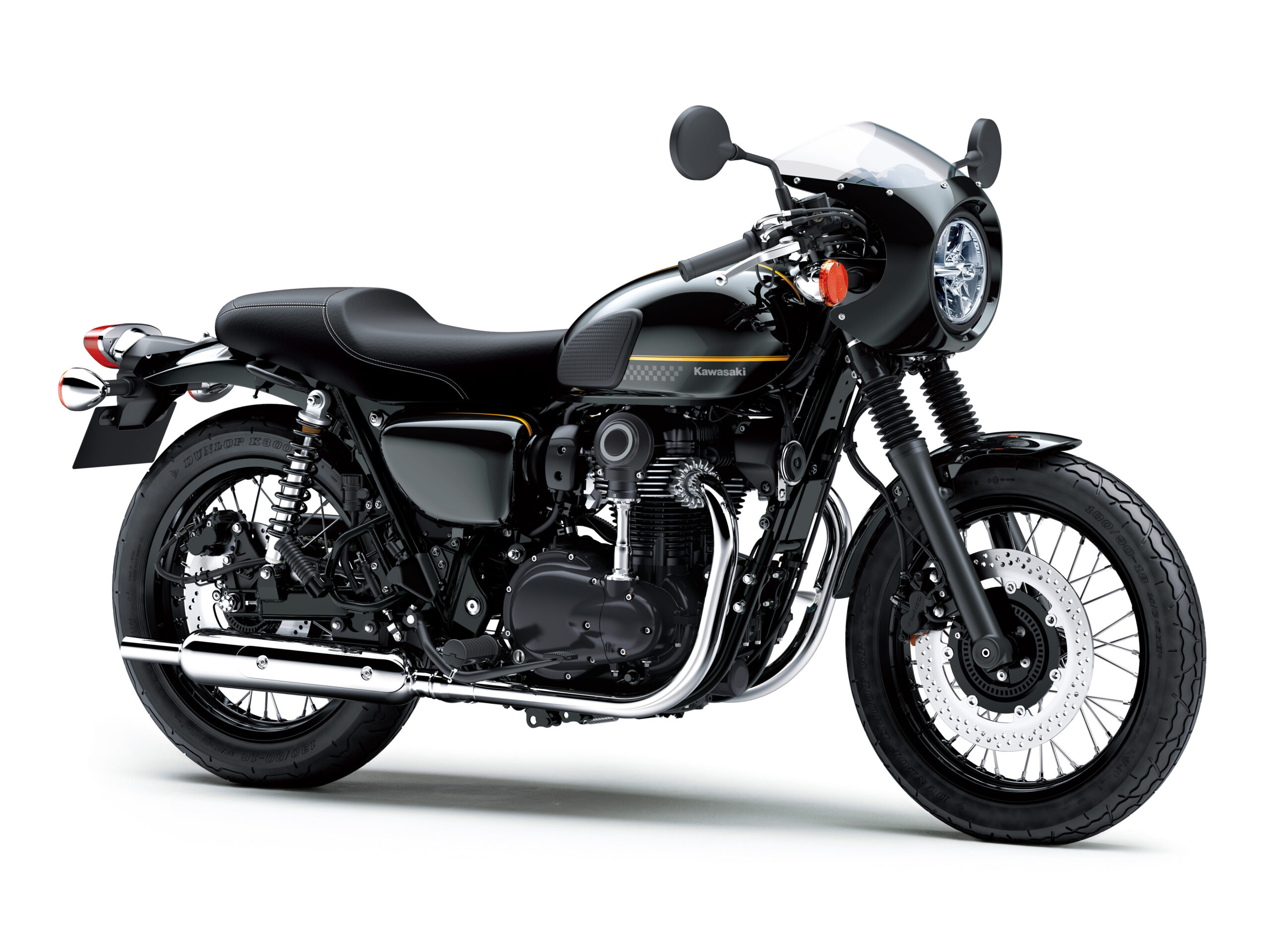W800 CAFEは、W800シリーズの中でもカフェレーサースタイルを取り入れたスポーティモデルである。空冷773ccバーチカルツインエンジンはそのままに、セパレートハンドルやビキニカウルを装備し、クラシックながらスポーティな外観を実現している。前傾気味のライディングポジションにより、スタンダードモデルよりもスポーツ性を意識した乗り味が特徴となる。クラシックバイクの雰囲気を残しつつ、走りの楽しさやスタイル性を重視したモデルで、Wシリーズの中でも個性的な存在である。ネオクラシックとカフェレーサーを融合させた魅力的な1台と言える。