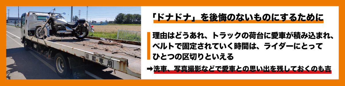 また、売却や乗り換えの場面にとどまらず、ツーリング中の思わぬマシントラブルや事故により自走不能となった際にも使われることもあります。